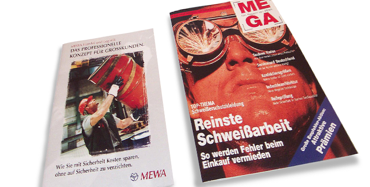 MEWA gehört zur Spitze, was Textilien im Dienstleistungssystem und Artikel für den Arbeitsschutz und technischen Bedarf angeht. MEWA ist der Partner für Berufs- und Schutzkleidung, Mehrweg-Putztücher, Fußmatten, Textilbedarf für Hotels, Gastronomie und Gesundheitswesen. Neben dem hervorragenden Service haben zu diesem Erfolg hauptsächlich die professionellen Kataloge und das innovative Dialog-Marketing (z. B. Kundenzeitschrift „MEGA") beigetragen. Beide schaffen es, dass MEWA bei immer mehr Firmen erste Wahl ist.