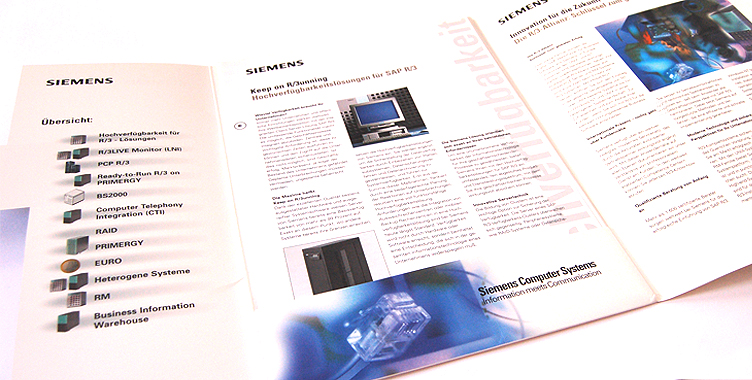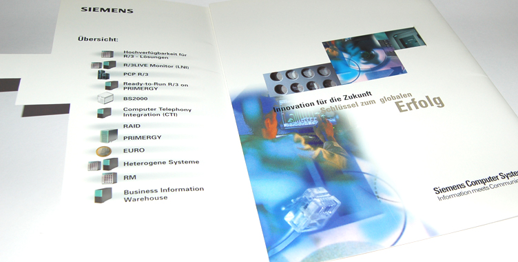 Für Siemens haben wir in Zusammenarbeit mit einen Agentur unter anderem einen Produktfolder entwickelt, welcher Modular aufgebaut war. Damit konnte der Kunde nur die Produktinformationen in Empfang nehmen, die in seinem Interesse lagen.